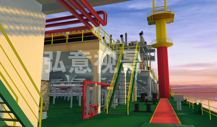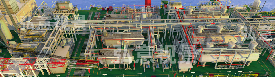 1、單點(diǎn)、機(jī)泵艙、生活樓、上部模塊、甲板層管道、艏船等及采油平臺(tái)模擬仿真;
