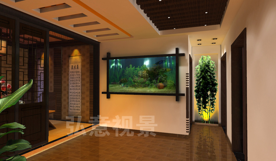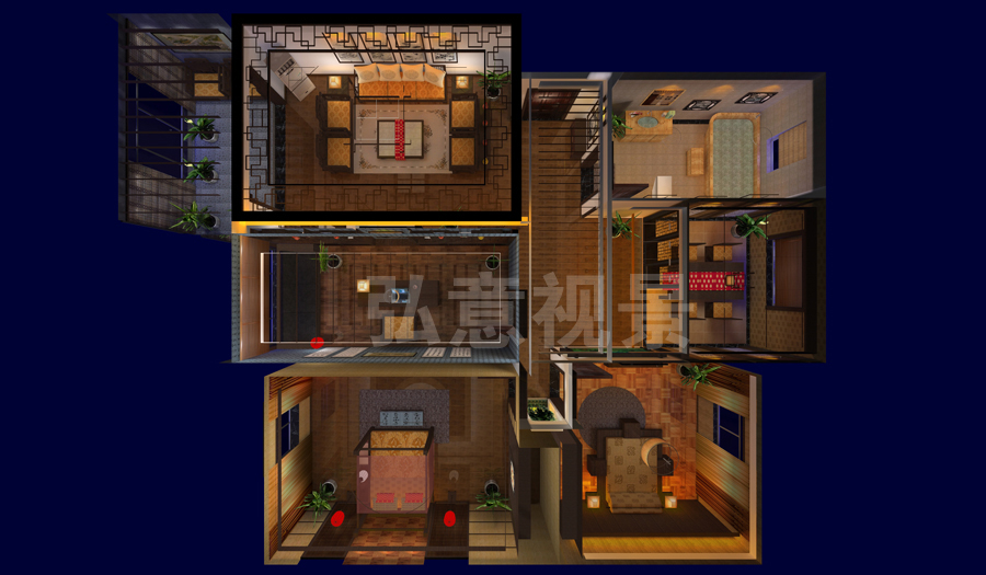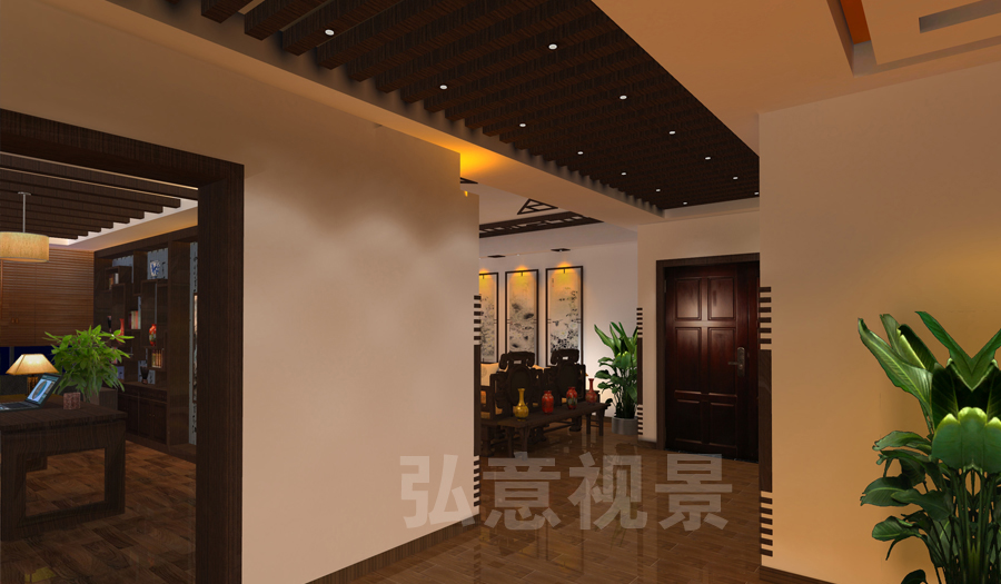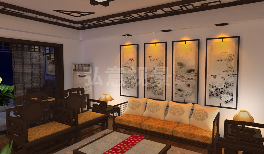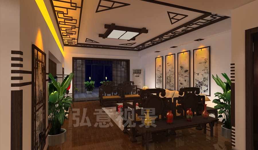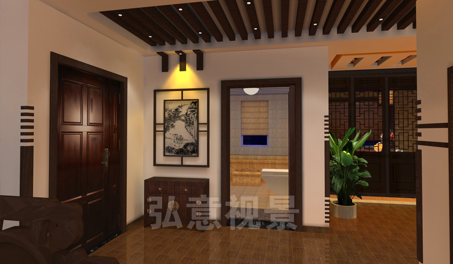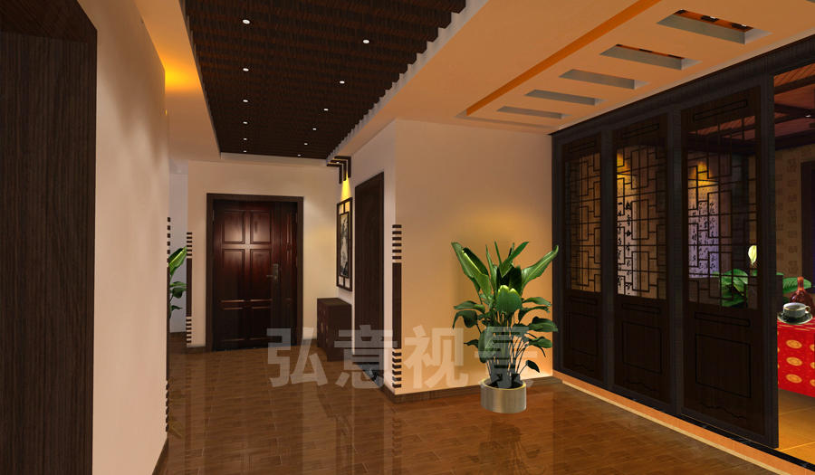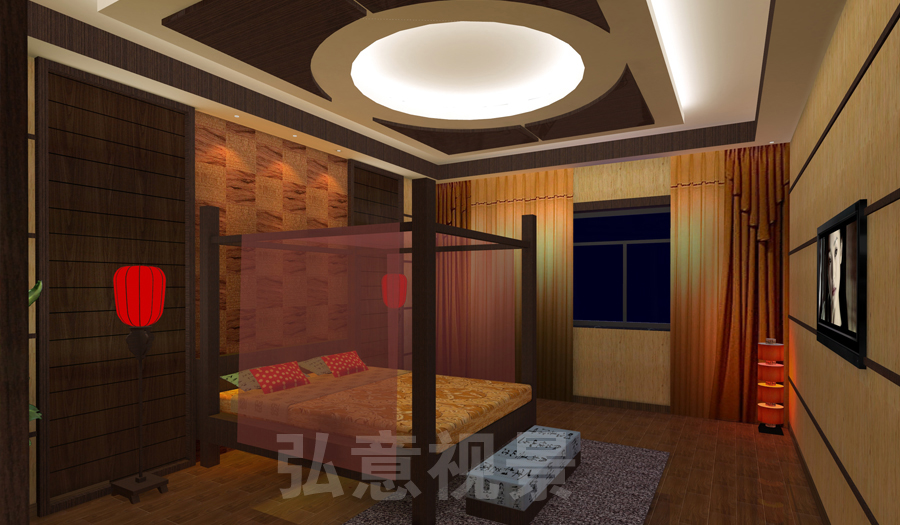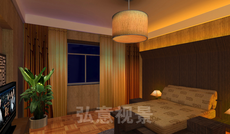 2、燈光以暖色為主,冷色為輔,使整個(gè)樣板間形成了溫馨氣氛;