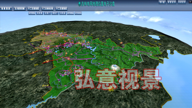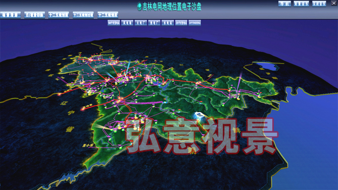 ....弘意科技三維電子沙盤系統(tǒng)主要展示吉林省的電網(wǎng)架構,主要包括特高壓、直流、500kV的廠站和線路信息,約數(shù)百個站的信息。
