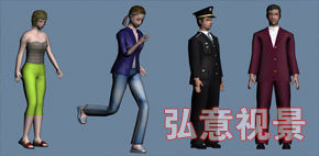 一個場景沒有人物就沒有生氣,弘意可以將各種人物及動物添加場景中,增加場景氣氛。 |